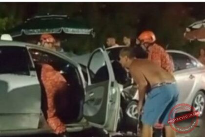 A colisão frontal envolveu dois carros de passeio