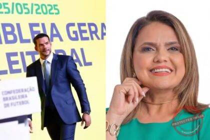 O presidente da Confederação Brasileira de Futebol (CBF), Samir Xaud, a deputada federal, Helena da Asatur (MDB) e o marido…