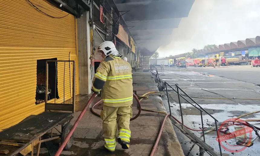 Segundo relatos, o incêndio teve início em uma loja de alimentos e se propagou rapidamente para estabelecimentos vizinhos que comercializam plásticos, papéis, bebidas e outros materiais altamente inflamáveis.