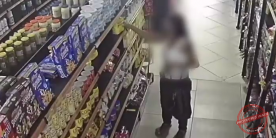 Câmeras de monitoramento registraram o momento em que uma mulher furta cinco unidades de leite em pó em um supermercado na Avenida Arthur Bernardes, no Parque Rosário, em Campos dos Goytacazes.